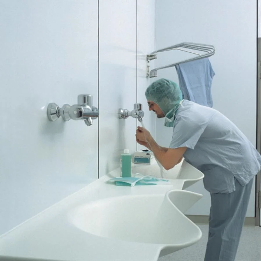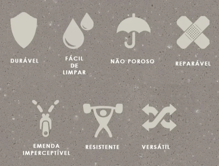 Não poroso, sólido, homogêneo, sem emendas, duradouro, resistente como a pedra e resistente a muitos materiais químicos e condições físicas adversas, composto de 30% a 35% de PoliMetilMetacrilato (PMMA) e 70 a 65% de minerais naturais sendo o principal TriHidrato de Alumina(ATH). Espessura mínima de 12mm, não existe nenhum perigo de deterioração por separação de capas, não se decompõe, resiste a praticamente qualquer mancha, apresenta uma elevada resistência térmica e ao impacto, e não necessita de cuidados especiais. As emendas sólidas são fundidas com adesivos Corian® DuPont™ e são imperceptíveis. Todos os acabamentos entre Corian® e outros materiais é feito através de resina a base de poliuretano para garantir a selagem, sem fissuras e/ou microfissuras, sem vazamentos de água. As rodapias e bordas para retenção de líquidos (áreas úmidas) são feitas sob medida podendo ter acabamento reto ou arredondado. Ideal para salas limpas, áreas úmidas, microbiologia, manipulação com alimentos, medicamentos, soluções ácidas, solventes, áreas de saúde e outros (recomendação da ANVISA). Material fácil de instalar e de modificações futuras. A superfície acabada quando danificada é muito fácil de ser reparada. Na maioria dos casos, a reparação se faz na obra com esponjas abrasivas ou utilizando-se uma lixadeira orbital. Nos piores casos, é possível recortar a superfície mais deteriorada e trocá-la por outra peça de Corian®. Fornecemos um certificado de garantia de 10 anos pela DuPont e DecoreA.